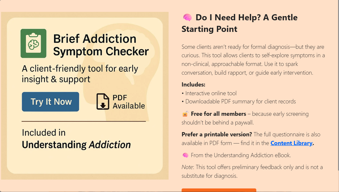 **Prefer a printable version?** The full questionnaire is also available in PDF form — find it in the **[Content Library](https://theunderratedsuperhero.com/file-download/brief-addiction-symptom-checker-2/).**