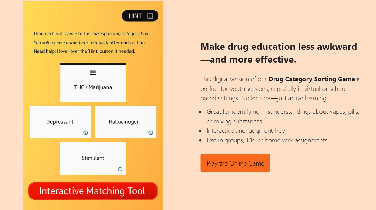 This digital version of our Drug Category Sorting Game is perfect for youth sessions, especially in virtual or school-based settings. No lectures—just active learning.