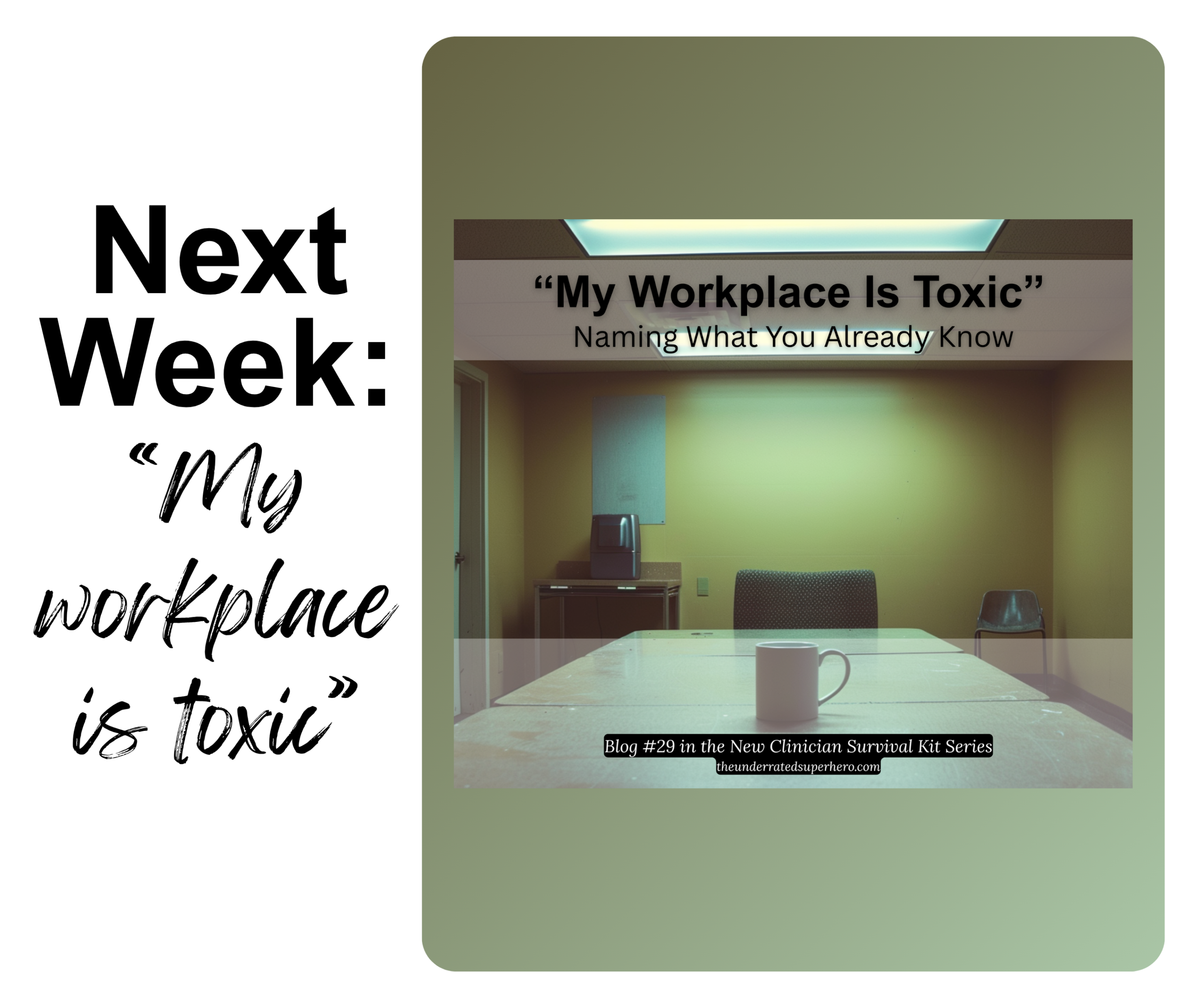 This is post #28 in the New Clinician Survival Kit Series â a collection of honest, non-cheerful blogs about the parts of this work that don’t show up in grad school. If you’ve been feeling something and can’t quite name it, this series is probably where you’ll find the words.