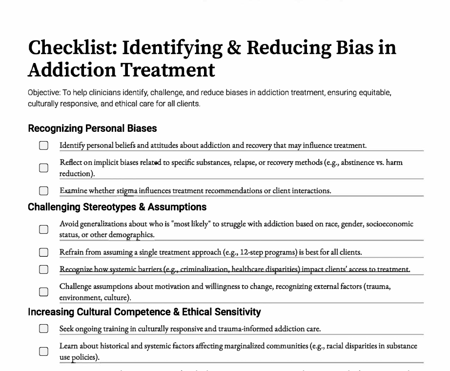 Checklist ā Identifying & Reducing Bias in SUD Care
