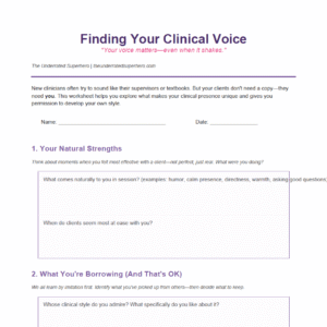 A reflective worksheet for exploring your natural clinical strengths, identifying what you’ve borrowed from others, and giving yourself permission to develop your own style.