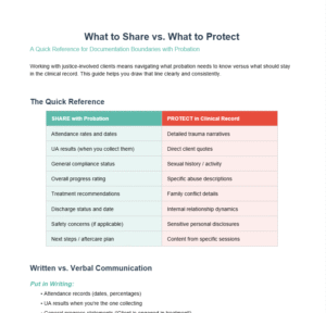 Clinicians navigating confidentiality boundaries with probation officers, counselors unsure what to include in court reports, and anyone who’s ever frozen when a PO asked for “more information.”