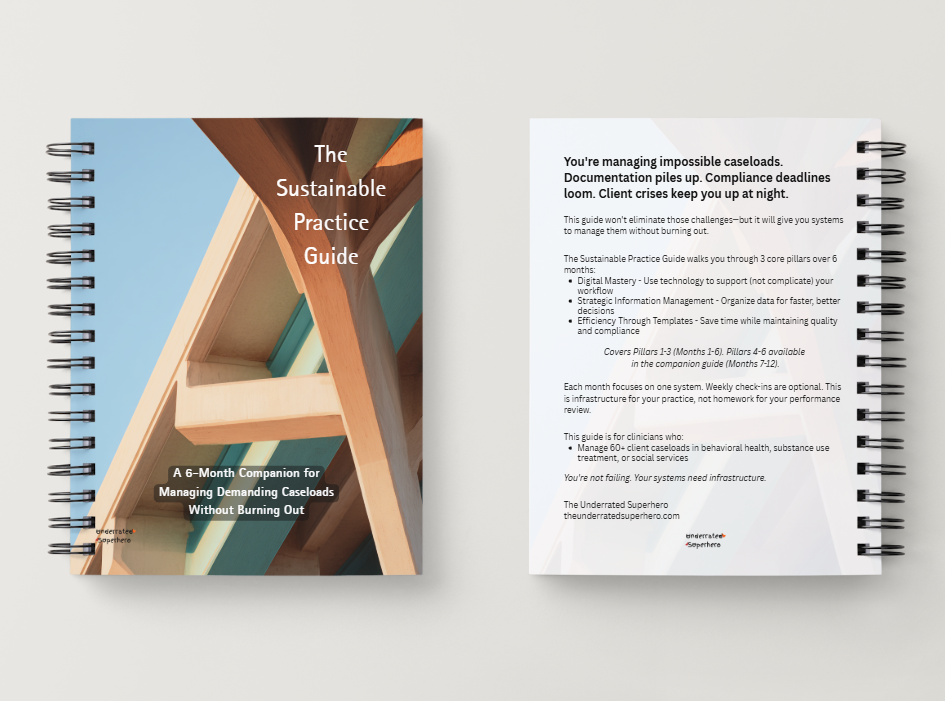 Documentation Mastery is a 6-month companion system designed specifically for addiction counselors and behavioral health professionals managing demanding caseloads. Unlike generic productivity planners, this toolkit walks you through a proven four-phase methodology that transforms documentation from an overwhelming burden into a sustainable practice. Starting with Digital Mastery to optimize your EHR workflow, progressing through Strategic Information Management to capture clinical information efficiently, building Efficiency Through Templates to reduce repetitive work, and culminating in a Systems Check to solidify your habits, this program helps you reclaim hours each week without compromising the quality of care you provide. Available in two editions to match your working style and needs, with all purchases including free shipping.