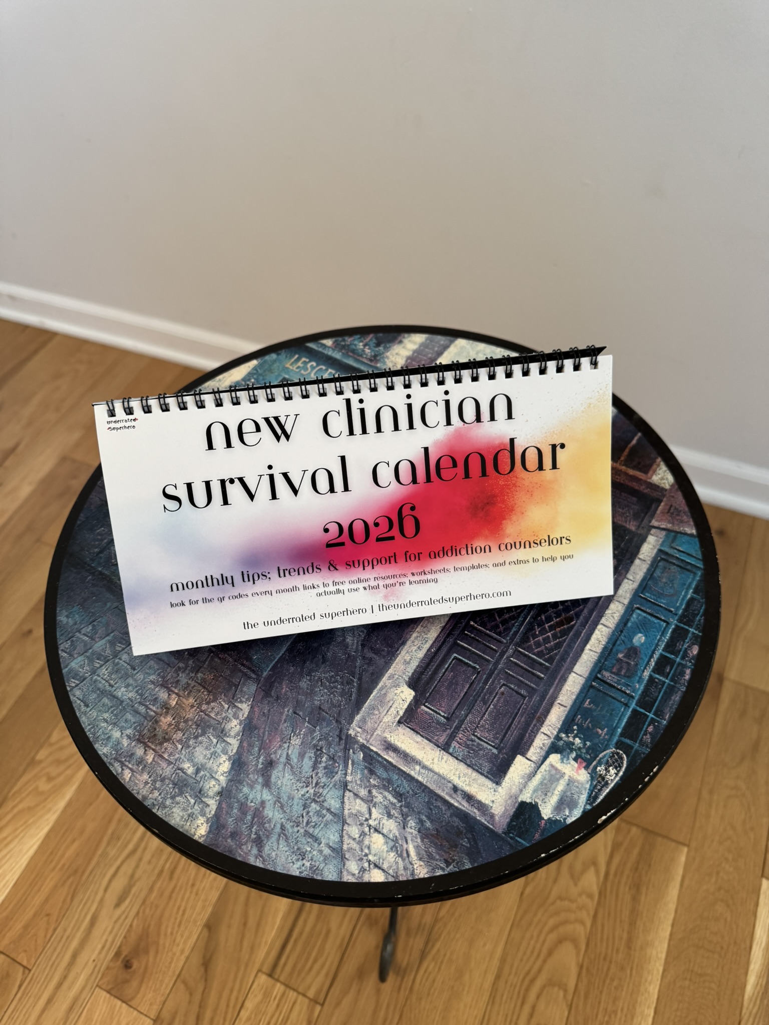 PRE-ORDER: Digital resources available upon launch. Physical kit ships 10-14 business days after launch date. FREE SHIPPING included. Winter hits different when you’re new. The post-holiday return is heavy — clients in crisis, paperwork piling up, and your own burnout creeping in. This kit gives you a desktop calendar built for addiction counselors, with monthly tips, clinical trends, and awareness dates that actually matter. Plus, quick-capture tools for the thoughts that hit between sessions and reference cards for the moments you need a script. Includes digital resources for tracking supervision hours, CEUs, and clinical phrases you’ll use every week.