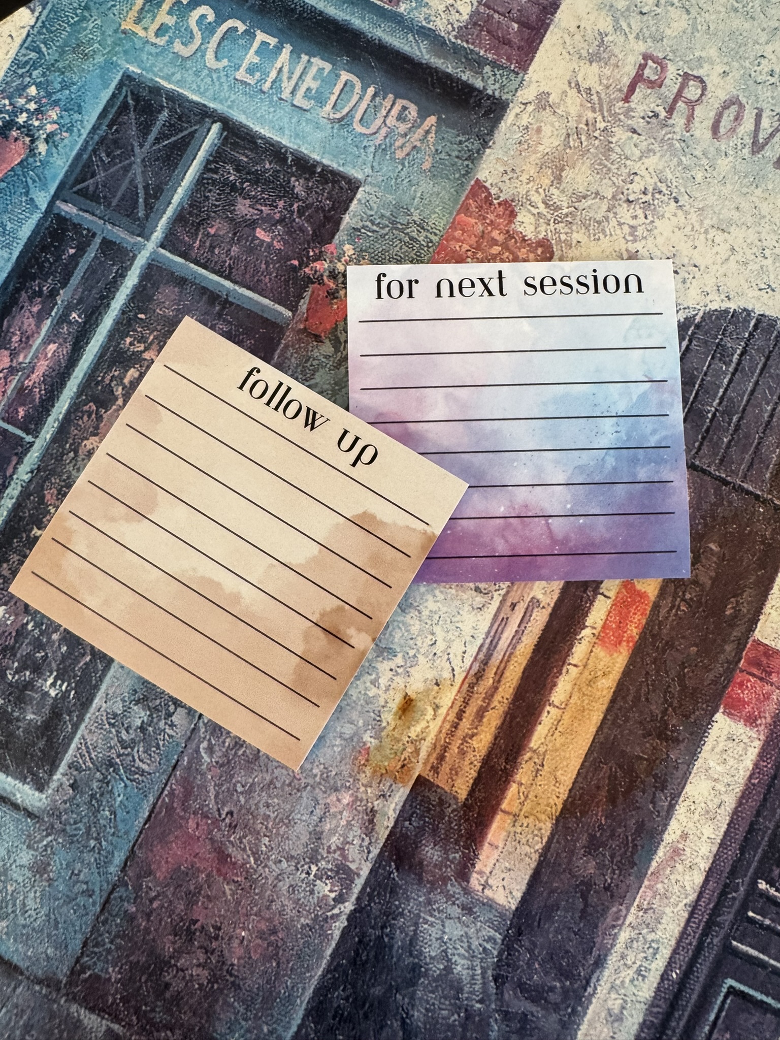 • Structured Sticky Note Set (“Follow Up” + “For Next Session”)